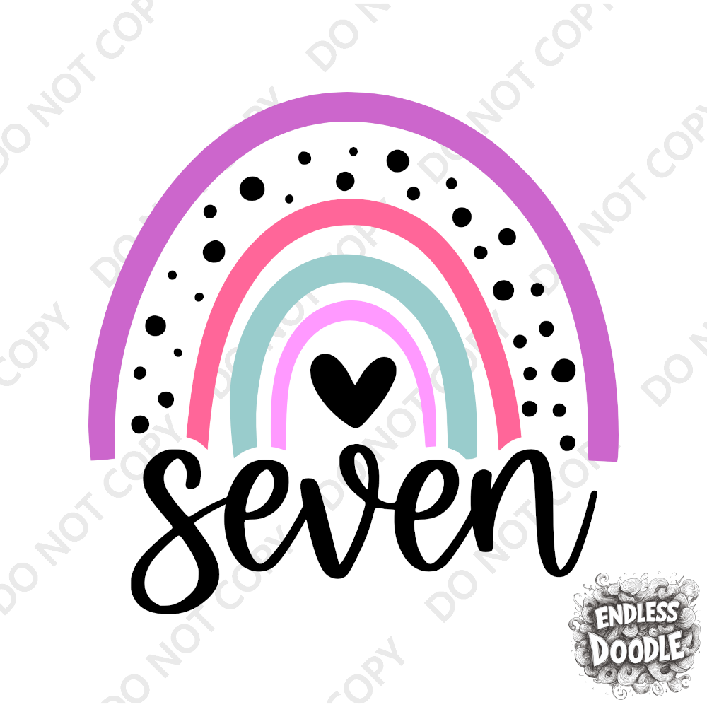 7th Birthday Girl Seven Year Old - Rainbow Pink Purple Kids DTF Transfer - Gift Do it Yourself Iron On Heat Press Shirt Any Material Long Lasting Full Colour